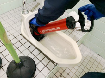 ペーパーの流し過ぎの場合は主に、真空式の貫通器で対応します。どなたも見たことがあるであろうラバーカップ(パコパコとかスポスポと呼ぶ人もいる)も真空式貫通器の一種です。
